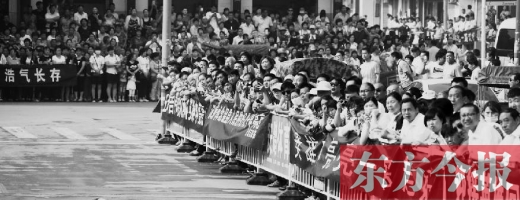 此時,在溫縣殯儀館到溫縣烈士陵園的十幾公里的道路上,早已聚集起了自發(fā)前來送申亮亮最后一程的10萬余名群眾。他們有的胸佩絹花為烈士禱告,有的垂首肅立向烈士致敬,有的眼含熱淚向遠去的靈車行注目禮,盡管他們中絕大多數此前和申亮亮并不相識,但他們仍用各自不同的方式來表達著對英雄的不舍。