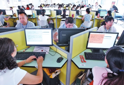 昨天上午9點(diǎn)半,鄭州47中的評(píng)卷現(xiàn)場內(nèi),各科評(píng)卷教師被分別集中在相應(yīng)的機(jī)房里閱卷評(píng)卷,十分安靜。