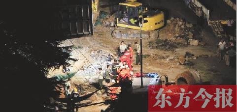 事件:疑為地下自來(lái)水管漏水加上暴雨,發(fā)生塌方,“4人墜坑兩人獲救”,另兩人一直在搜救中
