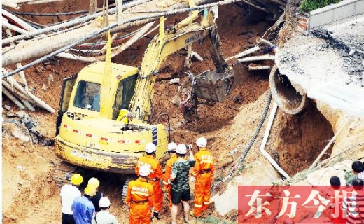 塌方發(fā)生時,一男一女被民警和熱心市民救出。目擊者稱,坑中仍有一名女士和小孩,但警方經(jīng)過排查,除了名叫張帆的女士,尚未發(fā)現(xiàn)有人員失蹤。今報三批記者輪班蹲守現(xiàn)場,截至3日2時,救援在經(jīng)歷了近30個小時后,尚未找到張帆。□東方今報記者 夏萍 見習(xí)記者 靳亞東 宋迎迎 攝影 首席記者 袁曉強 張曉冬 沈翔 邱琦