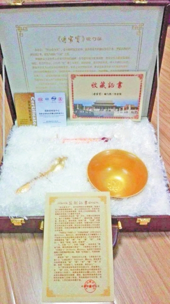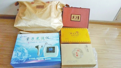 記者在經(jīng)三路和緯二路交叉口一小區(qū)內(nèi),見到了劉大媽領(lǐng)回的禮品。除大米、食用油、蜂蜜、刀具外,劉大媽還領(lǐng)了保健鞋、軟玉墊、治療儀、金碗筷,以及向天果、靈芝口服液保健品。其中僅兩盒口服液商家要了1萬元,其余全為贈(zèng)品。劉大媽老伴說,他咨詢了專業(yè)人士,贈(zèng)品加起來不值幾百元,口服液在藥店一盒也僅售幾百元,而在網(wǎng)上類似于靈芝口服液的產(chǎn)品一盒只要100多元。他拿起商家送的金碗,用手一摳,表層金黃色便被摳掉。