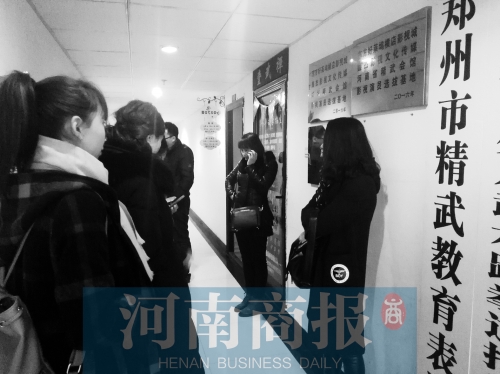 2月15日下午,十多位學(xué)生家長來到鄭州市金水區(qū)萬邦茶城旁邊的銀河商務(wù)寫字樓,商量怎么找到“鄭州精武教育學(xué)?!钡呢撠熑?。前一天帶著孩子來上課時,發(fā)現(xiàn)學(xué)校的門鎖著,名叫“于泉林”的負責人也失聯(lián)了?!半娫捘艽蛲?,就是始終不接電話?!睂W(xué)生家長許女士說,她的電話已經(jīng)被“于泉林”拉黑了。