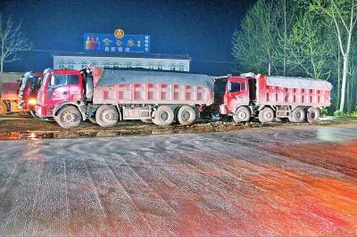 張亞麗介紹,為防止疑似超限超載車輛在深夜闖崗,交通、公安立即增派執(zhí)法人員,分組對車輛進行布控。13日凌晨3點左右,突然有十余名不明身份人員對執(zhí)法人員進行辱罵,并向執(zhí)法人員潑灑糞水,后又集結18臺疑似超限超載車輛強行闖崗,執(zhí)法人員立即采取果斷措施,在和孝營超限檢測站前將車輛攔停,并暫扣至卸貨場。