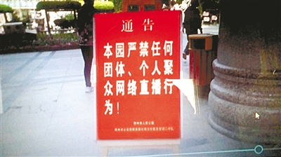 4月19日上午,市民王先生來電稱,紅極一時的人民公園的尬舞被叫停了,不知什么原因。上午10時,記者來到人民公園東門,進門就看到一張紅紙告示“本園嚴禁任何團體、個人聚眾網(wǎng)絡(luò)直播行為!”