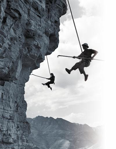 和楊貴第二次見面是在1960年2月,春節(jié)剛過,寒風(fēng)凜冽刺骨,那時,魏德忠去林縣采訪山區(qū)建設(shè)情況,車行至山腳下,當(dāng)聽到崖上開鑿打洞的聲音時,循聲望去,只見一個個腰系繩索,懸掛在崖壁上的開鑿巖石的身影??吹蕉嗳苏谛藿ㄋ恼鸷硤雒?,特別激動,“這不是當(dāng)年的愚公移山嗎?”