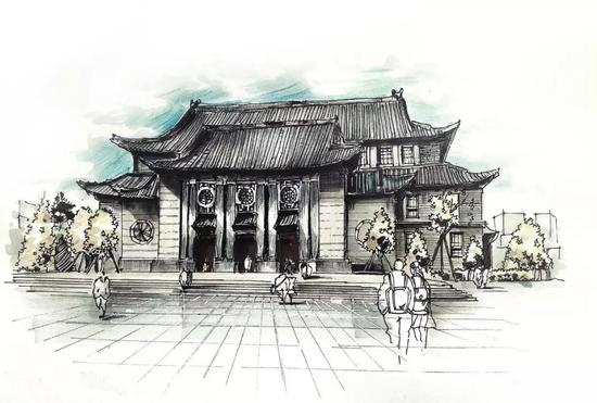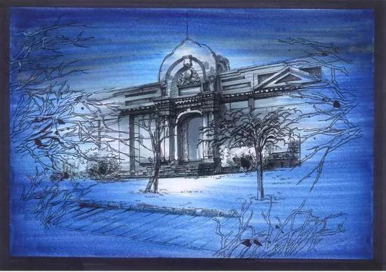 簡(jiǎn)單勾勒,沒有濃墨重彩,一如大禮堂古樸典雅的模樣。大禮堂前人來人往,四季更替,她靜穆佇立,深情地望著每一位腳步匆匆的學(xué)子。