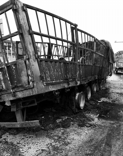大貨車的車身被燒毀武陟縣交通運輸局執(zhí)法所供圖