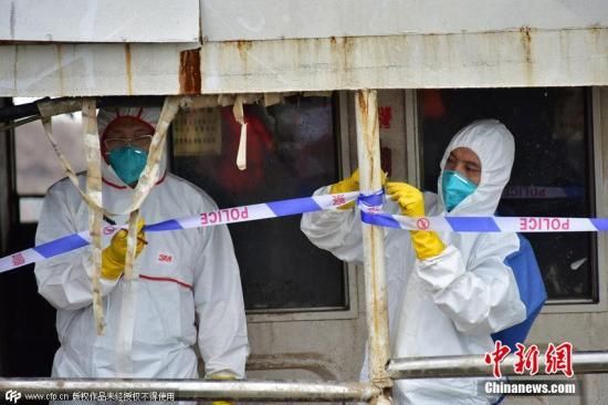 2015年6月8日,湖北荊州,工作人員對“東方之星”輪逐層逐艙進(jìn)行最后的排查清理。14時(shí)10分,驗(yàn)收通過后長江公安警方拉上了警戒線,這標(biāo)志著“東方之星”輪現(xiàn)場排查清理工作全部完成。圖片來源:CFP視覺中國