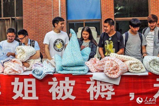 2015年05月31日,北京,清華大學(xué)生物科技學(xué)院大三學(xué)生小磊(左一)花800元買下了兩套學(xué)姐的被子。清華大學(xué)生物科技學(xué)院的大三學(xué)生小磊說(shuō),他在閑魚(yú)app上花了近800元拍下了兩床學(xué)姐的舊被子,就旁人看來(lái)這簡(jiǎn)直就是“天價(jià)”,可小磊卻稱 “不貴!學(xué)姐馬上要回韓國(guó)了,我仰慕她三年,留樣?xùn)|西給自己作個(gè)念想也好”,小磊說(shuō)。