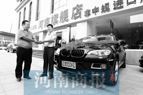 前日下午3點(diǎn),河南商報(bào)記者在鄭東新區(qū)“開(kāi)利星空”河南旗艦店找到一輛剛剛在車(chē)管所掛牌的寶馬X6。