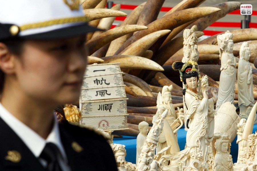中國(guó)2008年獲準(zhǔn)從南部非洲四國(guó)進(jìn)口象牙,但未能使國(guó)內(nèi)非法象牙買(mǎi)賣(mài)趨緩,反而刺激了新的消費(fèi),成為非法市場(chǎng)的灰色保護(hù)傘。圖為2013年8月7日,香港,海關(guān)人員在葵涌海關(guān)的貨物抽檢中查出1120根象牙,13根犀牛角以及5件美洲豹皮。這艘貨船來(lái)自尼日利亞,謊稱是運(yùn)送食物。REUTERS