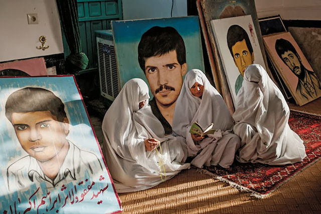在兩伊戰(zhàn)爭(zhēng)中犧牲的烈士的母親,正在兒子墓地周?chē)矶\著,周?chē)撬麄兊男は瘛?/p>