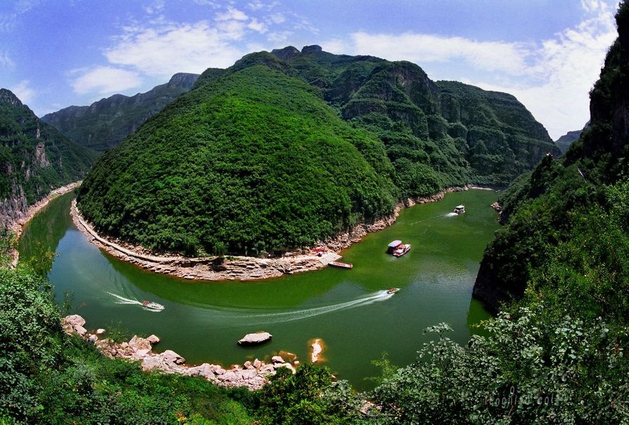 青天河濱水棧道全長(zhǎng)8000米,沿大泉湖西岸而建,依山就勢(shì),臨水傍湖,為游客近距離觀賞大泉湖、駱駝峰、千奇洞、鯨魚灣等精品景點(diǎn)提供了便利。沿棧道前行,可以穿深峽、探幽谷、覓奇洞,移步換景,峰回路轉(zhuǎn),偶爾幾掛飛瀑,驀然一處險(xiǎn)峰,一山一天地,一灣一境界。穿行于棧道,恰似穿行于一條奇妙的丹青畫廊,聽山水清音,賞湖光山色,歷人間仙境,覓世外桃源,于你是一次物我兩忘的精神之旅。