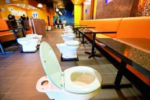 美國(guó)洛杉磯一家以廁所為主題的餐廳上周末正式營(yíng)業(yè),吸引了不少食客。