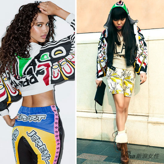吳莫愁身穿adidas Originals x Jeremy Scott系列女款運(yùn)動(dòng)服