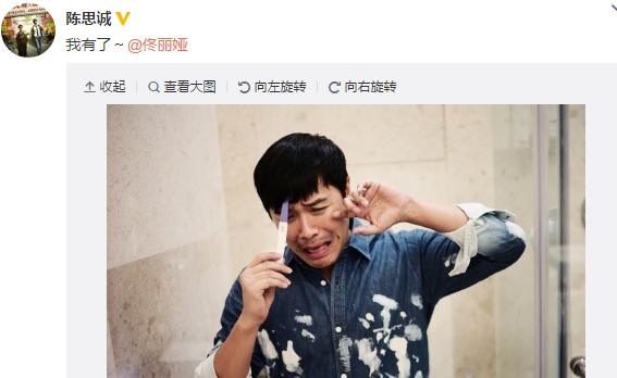 今日(10月21日)上午,陳思誠更新微博,曬出一張手拿驗(yàn)孕棒的照片,并艾特佟麗婭稱“我有了”,畫面十分搞笑。