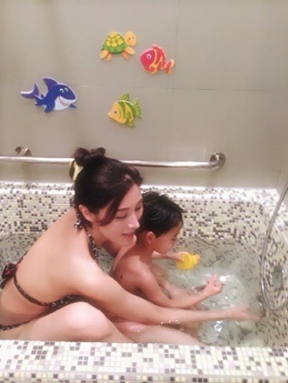 李嘉欣比基尼與兒共浴