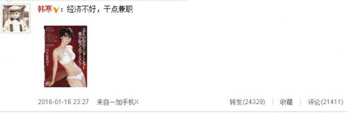 韓寒撞臉日本女優(yōu) 自侃:經(jīng)濟(jì)不好干點(diǎn)兼職