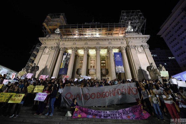 當(dāng)?shù)貢r(shí)間5月27日,巴西里約,民眾示威抗議少女遭輪奸。巴西33名男子涉嫌下藥輪奸一名16歲少女,并在社交媒體上“炫耀”輪奸視頻,震驚全國(guó)。聯(lián)合國(guó)婦女署高度關(guān)注此事,敦促巴西當(dāng)局詳查此案。巴西警方已經(jīng)對(duì)4名男子發(fā)布逮捕令,著手追蹤其余犯罪嫌疑人。圖/視覺(jué)中國(guó)