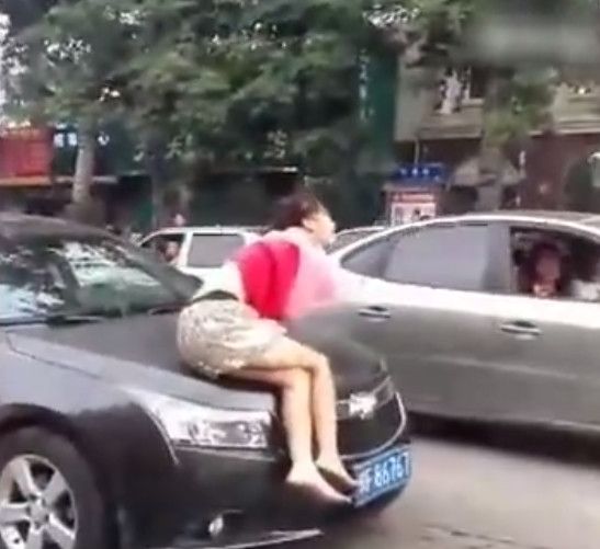 據(jù)說(shuō)這名女子經(jīng)常出沒(méi)在這帶上演人車(chē)大戰(zhàn)。路上的小轎車(chē)司機(jī)看見(jiàn)她就十分的頭痛。因?yàn)樗龑?zhuān)找小轎車(chē)下手。其實(shí)也不傻!今天又出現(xiàn)在村里的小吃街上了,鎖定黑色雪佛蘭。二話(huà)不說(shuō)就上了它!其實(shí)就她的一些小計(jì)倆,路邊的人都心知肚明了,誰(shuí)叫她精神有點(diǎn)不好呢!