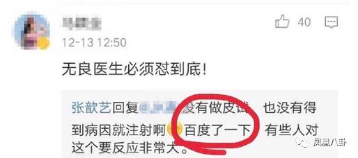 張歆藝不滿被“強迫”打針也有她的看法,她貼出了百度百科對該藥物的解釋,稱“知識改變命運”,認為醫(yī)院在不給自己做“皮試”的情況下就打針是不負責任的。