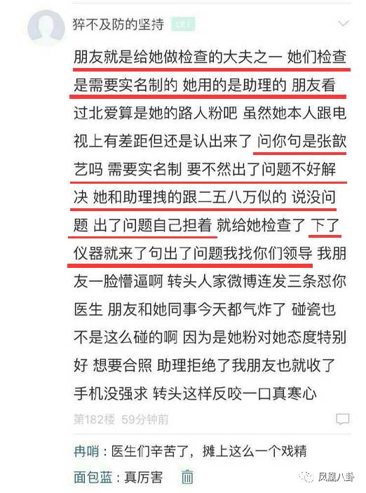 不少網(wǎng)友也補充說明了當時的情況,力證醫(yī)生當時給張歆藝做了全套檢查,張歆藝在結(jié)束檢查后還威脅醫(yī)生“出了問題找你們領(lǐng)導(dǎo)”。