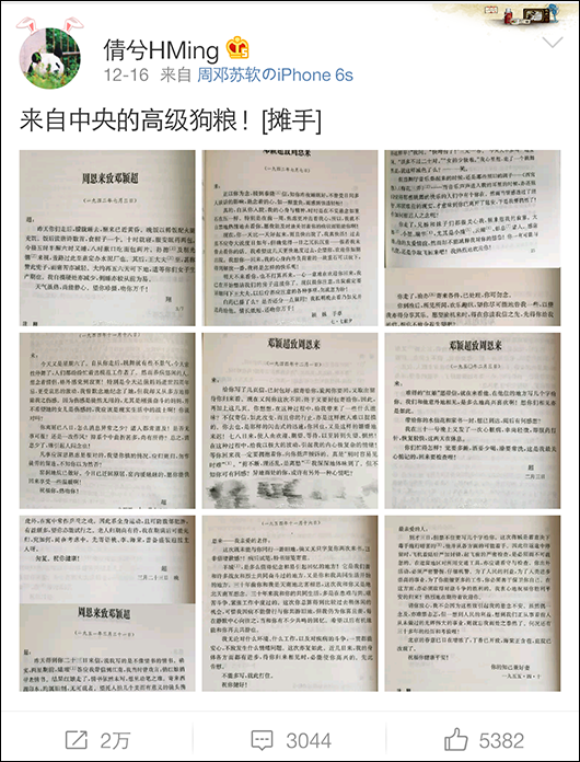 最近,新浪博主@倩兮HMing 送上了這把跨越數(shù)十年的,來自中央的高級(jí)狗糧:1942至1955年,9封周恩來與鄧穎超的往來書信。