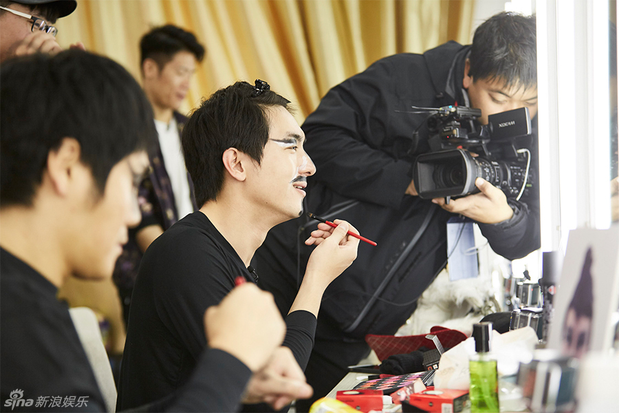 秒變“美妝達(dá)人”,在自己的臉上展示了一套完整的“暗黑系妝容”,出挑的黑色眼線更是格外引人注目。為了上妝方便,林更新細(xì)致的將額前的頭發(fā)固定在頭頂,手拿畫(huà)筆,在自己的臉上描畫(huà)出一個(gè)個(gè)夸張線條,最后還不忘加上充滿“男人味”的小胡子。