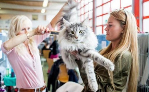據(jù)外媒報(bào)道,日前,瑞士沃勒勞(Wollerau)舉行國際貓展。展覽上,各路“喵星人”紛紛亮相比美。圖為一只名為“布拉德利”(Bradley)的貓咪梳妝打扮,準(zhǔn)備參賽。