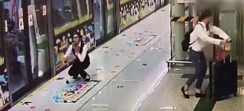 這一舉動(dòng)十足嚇了現(xiàn)場(chǎng)工作人員一跳,女子隨后不知什么原因,地鐵也不坐就離開(kāi)了。