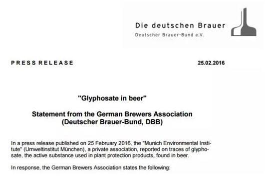 據(jù)鐘凱介紹,德國(guó)釀造業(yè)協(xié)會(huì)(DBB)曾對(duì)這則報(bào)道發(fā)布聲明進(jìn)行辟謠,并附有德國(guó)聯(lián)邦評(píng)估所(BfR)的官方態(tài)度。聲明指出,首先,使用農(nóng)藥就會(huì)有殘留,但殘留量不會(huì)其威脅健康。慕尼黑環(huán)境研究院發(fā)布的報(bào)告未提供充足證據(jù)以及分析方法,所以散布的檢測(cè)結(jié)果是經(jīng)不起驗(yàn)證的、不可信的。并且,德國(guó)釀造業(yè)協(xié)會(huì)有其自己的監(jiān)測(cè)體系,所得數(shù)據(jù)顯示,麥芽的草甘膦水平通常比限量低100倍。德國(guó)聯(lián)邦評(píng)估所也明確提出,按照?qǐng)?bào)道中最高的草酸磷殘留量30毫克每升來(lái)看,成年人每天要喝1000升啤酒才可能影響健康。