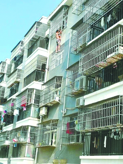 3歲女孩卡進(jìn)防盜網(wǎng) 男子沿墻爬上樓救人