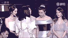 后來(lái)黃曉明隊(duì)和吳秀波隊(duì)的人一上來(lái),舞臺(tái)上就滿了,而張韶涵的位置從劉嘉玲的右邊換到了劉嘉玲左邊,變成在李冰冰和劉嘉玲中間??梢钥吹剿?dāng)時(shí)也還是挺尷尬的。然后李冰冰和張韶涵身邊的劉嘉玲握手寒暄,張韶涵尷尬的站在原地。