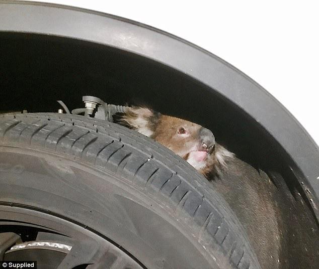 考拉卡在汽車(chē)輪胎 跟車(chē)16公里奇跡生還