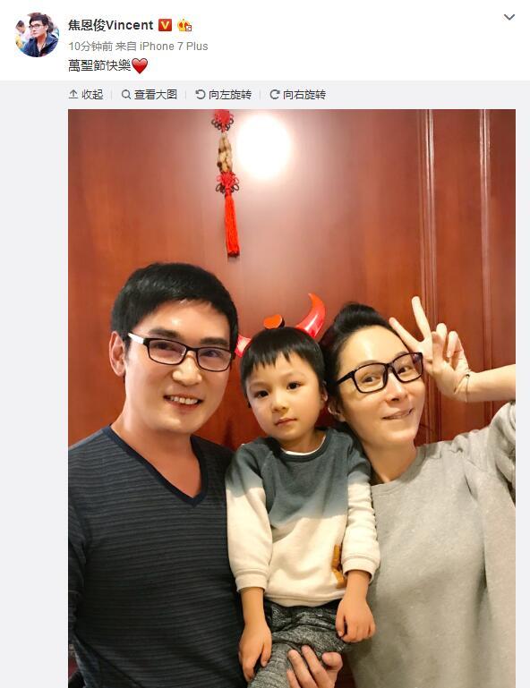“李尋歡”焦恩俊曬罕見全家福 兒子帥氣