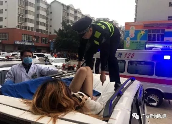覃警官稱,年輕女子由于受傷嚴(yán)重,無法言語,幾次掙扎著想坐立起來。他勸她別動,等待醫(yī)護(hù)人員。隨后,120醫(yī)護(hù)人員和城北派出所民警也趕到現(xiàn)場,年輕女子被抬上救護(hù)車送往醫(yī)院搶救。到醫(yī)院后,城北派出所民警立即協(xié)助醫(yī)院辦好了相關(guān)入院手續(xù)。