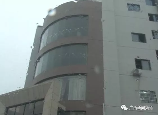 12月11日上午10時許,幾段視頻在一些來賓市民的微信朋友圈中頻頻轉(zhuǎn)發(fā),這些視頻顯示,來賓市桂中大道某酒店外,有一名年輕女子墜樓后,跌落至一輛五菱面包車車頂。