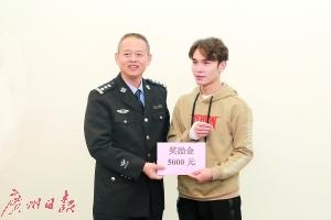 近日,白云警方為其送上表揚信和經(jīng)白云區(qū)見義勇為評定委員會頒發(fā)的見義勇為獎勵金。