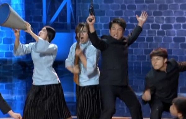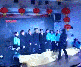 節(jié)目中參賽選手伴著《黃河大合唱》的背景音樂,做出一些夸張另類的肢體動作,當(dāng)時這段表演引得現(xiàn)場四位評委大笑,并獲得全票通過。