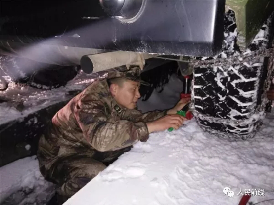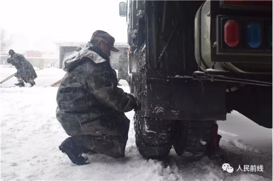 ▲第71集團軍某合成旅迅速啟動應急方案,檢查并禁錮車輛防滑鏈。