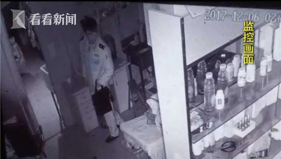 這是2017年12月6號(hào),這家煙酒店里的監(jiān)控視頻,這名身著警服的男子在店里四處轉(zhuǎn)悠,事后店主發(fā)現(xiàn)錢少了。