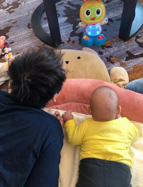網(wǎng)易娛樂2月8日?qǐng)?bào)道 2月8日中午,董子健曬出一張和女兒大福的合照,和女兒玩具機(jī)器人爭(zhēng)寵,字里行間充滿了醋味。大福圓滾滾后腦勺好不可愛,超級(jí)搶鏡!