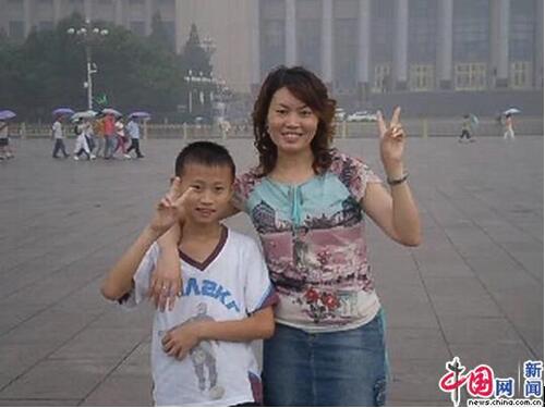 2007年,11歲的李嘉浩和媽媽去北京旅游,在天安門廣場(chǎng)上合影,那是他第一次跟媽媽出遠(yuǎn)門。(受訪者供圖)