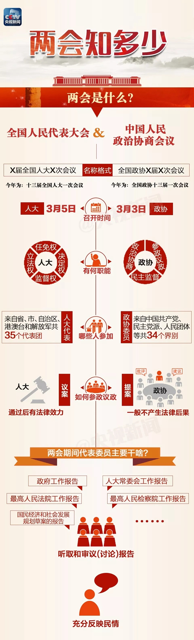 全國兩會年年開,但你知道這兩個“會”有何不同嗎?今年兩會,除了新一屆全國人大代表和全國政協委員首次亮相之外,又有哪些值得關注的看點?一起看下面這張圖,提前了解2018年全國兩會。