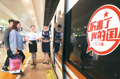 “厲害了,我的國!”在以350公里時(shí)速行進(jìn)的“復(fù)興號(hào)”列車上,這6個(gè)紅色的大字格外醒目。
