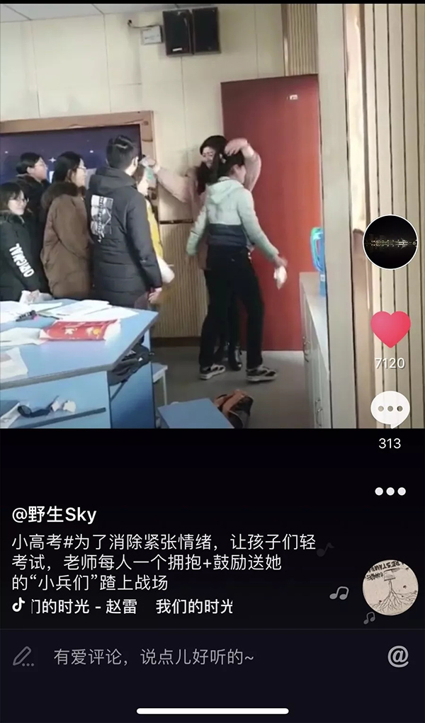 近日,在某視頻社交媒體上,一段老師在教室門口挨個擁抱學生的短視頻獲得數萬點贊。有網友表示,“雖然是簡單的擁抱,卻很溫暖,為老師點贊”。
