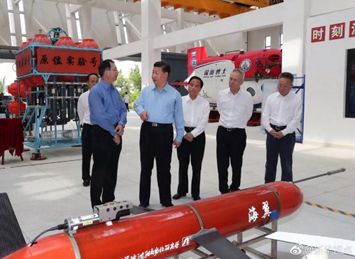 12日下午,習(xí)近平總書(shū)記來(lái)到位于海南三亞的中國(guó)科學(xué)院深??茖W(xué)與工程研究所,仔細(xì)察看“海翼”號(hào)深海滑翔機(jī)、“天涯”深淵著陸器等設(shè)備,并同“深海勇士”號(hào)載人潛水器設(shè)計(jì)師和深潛團(tuán)隊(duì)親切交談。