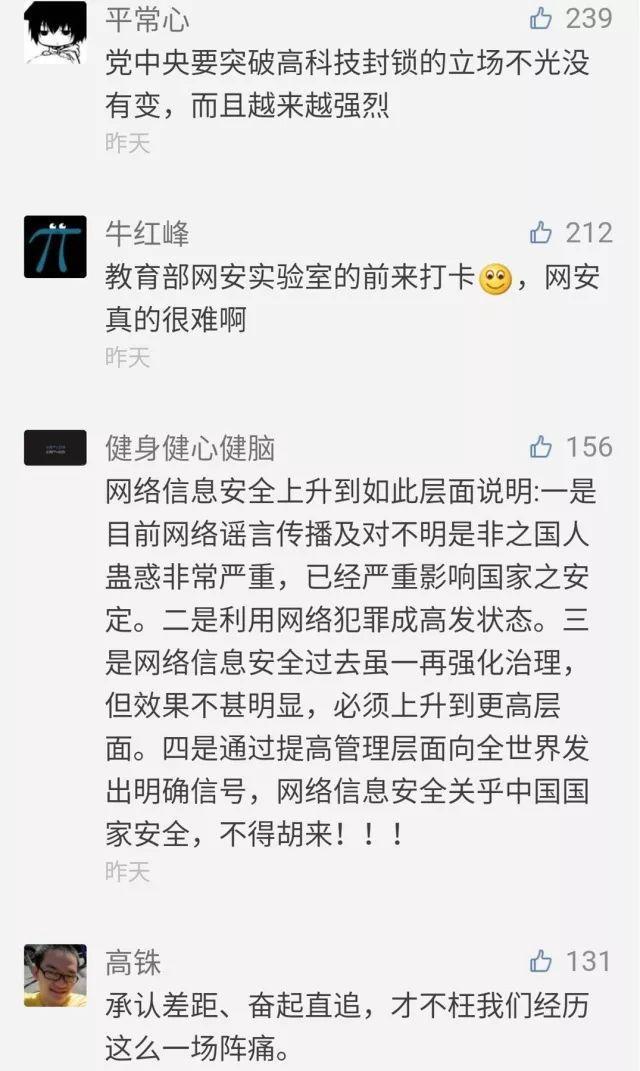 2016年4月的座談會,習(xí)近平做了更詳細的論述:網(wǎng)信發(fā)展的意義、網(wǎng)絡(luò)輿論生態(tài)、網(wǎng)信核心技術(shù)要盡快突破、網(wǎng)絡(luò)安全問題、互聯(lián)網(wǎng)企業(yè)要增強使命感和責(zé)任感、用好互聯(lián)網(wǎng)人才。這篇講話被稱為“4?19重要講話”。