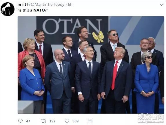 該照片目前已經(jīng)被西方各大主流媒體使用,作為其報道北約峰會的頭圖,比如美國《新聞周刊》、《時代》等。