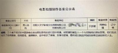 于夢媛在文中說,2013年中旬她完成了劇本的初稿。她母親作為法人申請了一家影視公司,加上張某的公司,共向遼寧省廣電總局提交了申請。電影暫定名由《逃離囧境》到《異遇瘋情》到最終的《男人危機》,該項目在經歷了廣電總局的退回申請與全劇本的審核后,終于在2013年9月29日獲得了拍攝許可證。